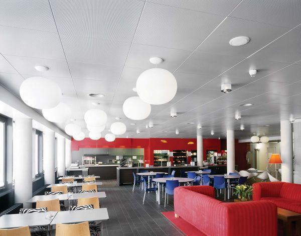 Sisteme de plafoane metalice utilizate pe scara larga, cu panouri prinse in sisteme de suspensie Armstrong. Fiind disponibil atat in placi cat si in platforme, sistemul ofera un aspect simplu, elegant. Aplicatiile tipice sunt aeroporturi, hoteluri, centre de agrement si comerciale. Disponibil cu diferite modele de perforare pentru cerinte estetice si functionale. De asemenea, disponibil cu functie de coborare optionala pentru un acces mai facil la servicii.